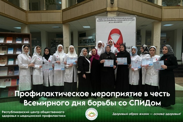 В рамках реализации федерального проекта «Здоровье для каждого», а также Недели борьбы со СПИДом и информирования о венерических заболеваниях Республиканский центр общественного здоровья и медицинской профилактики принял участие в мероприятии, посвящённом Всемирному дню борьбы со СПИДом, которое прошло в Национальной библиотеке ЧР имени А.А. Айдамирова.