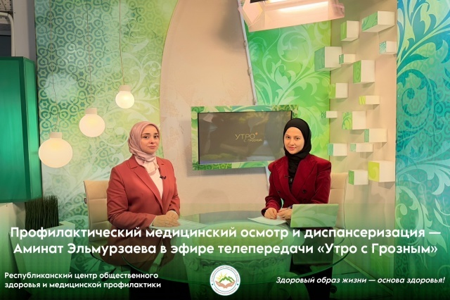 В целях реализации федерального проекта «Здоровье для каждого» главный внештатный специалист по медицинской профилактике Министерства здравоохранения Чеченской Республики, главный врач Республиканского центра общественного здоровья и медицинской профилактики Аминат Эльмурзаева выступила в эфире телепередачи «Утро с Грозным». Она рассказала о важности профилактического медицинского осмотра и диспансеризации в системе здравоохранения региона.