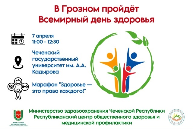По поручению Министерства здравоохранения Чеченской Республики Республиканский центр общественного здоровья и медицинской профилактики совместно с Национальным советом айкидо России и Станцией переливании крови будет проводить марафон "Здоровье — это право каждого!", посвящённый Всемирному дню здоровья 7 апреля.